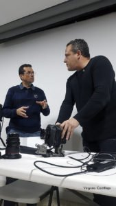 Para terminar su exposición, Javier, nos mostró su equipo de trabajo, con objetivos descentrables y un adaptador para cámara digital que le otorga la misma versatilidad de movimientos en distintos planos, tanto del sensor como del objetivo, igual que una cámara de placas con fuelle.