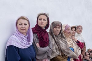 Un grupo de vecinas interpretando su papel. Fotografía Virginia Castillejo